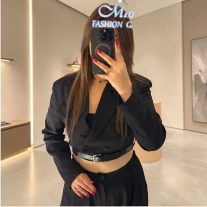 Ensemble de Soirée : Blazer Court Strassé et Pantalon Tailleur Large Noir