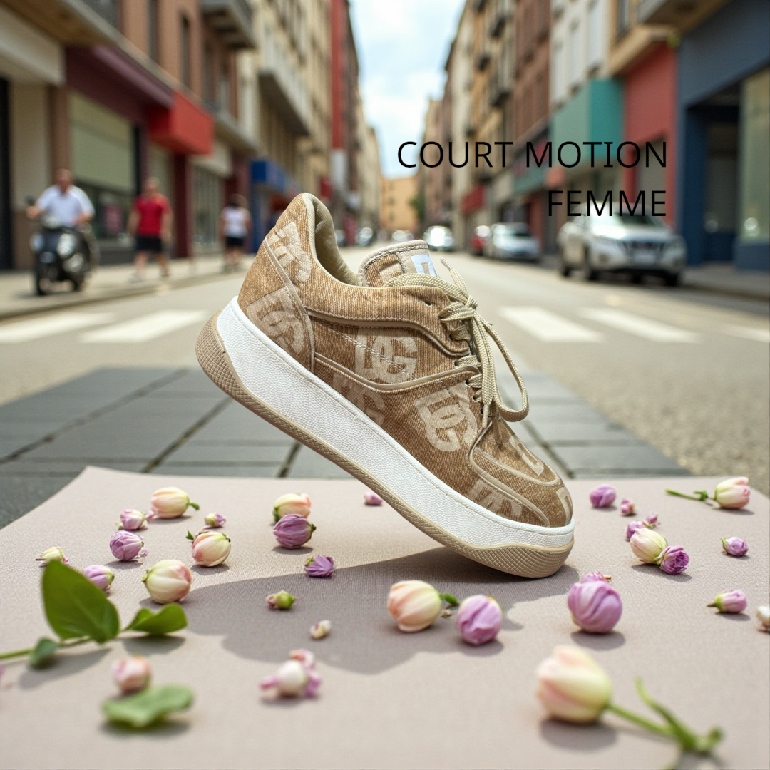 Optez pour une élégance naturelle avec ces baskets Court Motion en toile beige. Le motif monogramme ton sur ton offre un style subtil et luxueux, complété par des lacets assortis et une semelle plateforme blanche épurée. Légères et polyvalentes, elles se marient aussi bien avec une robe d’été qu’avec un pantalon chino pour une allure soignée et décontractée.